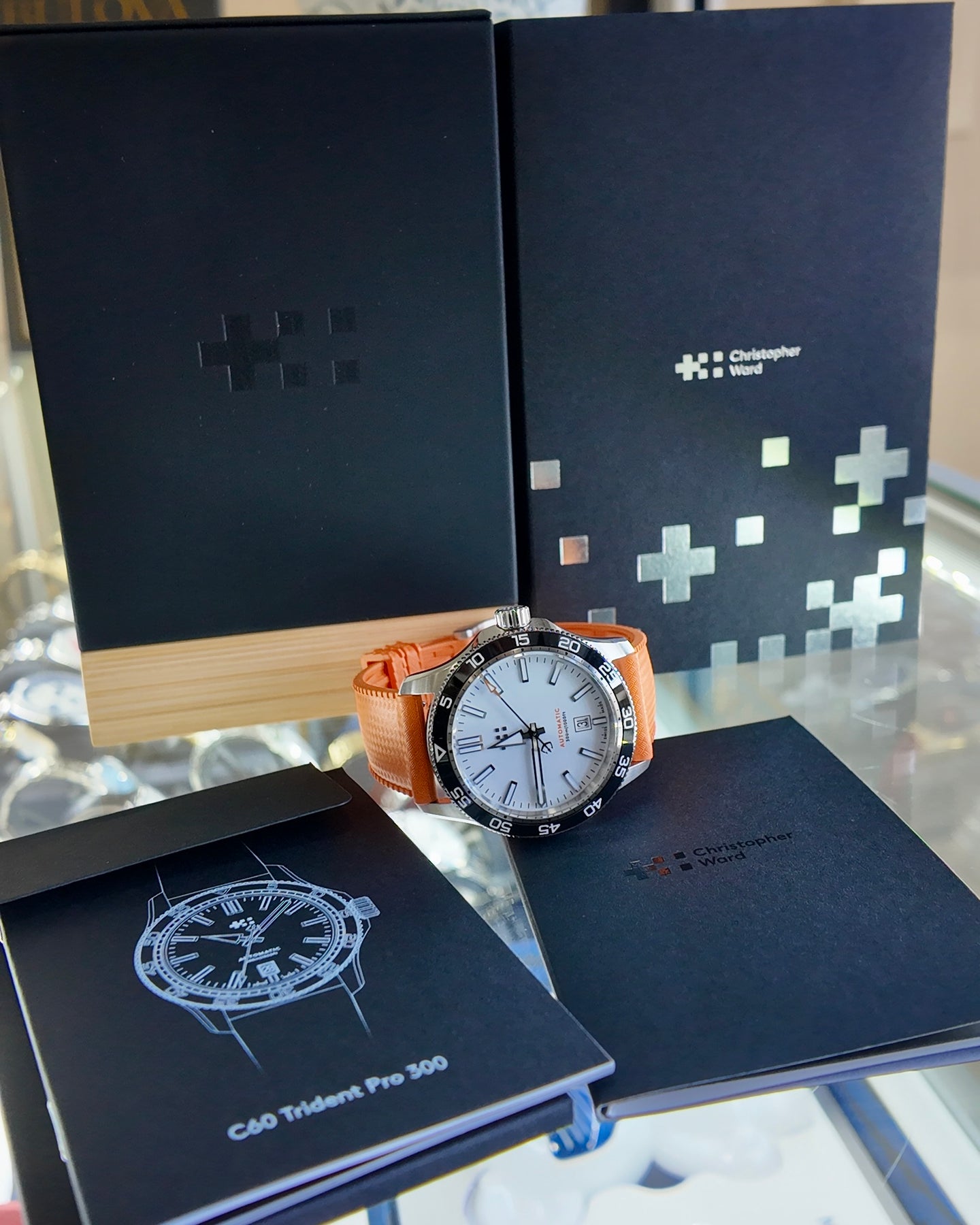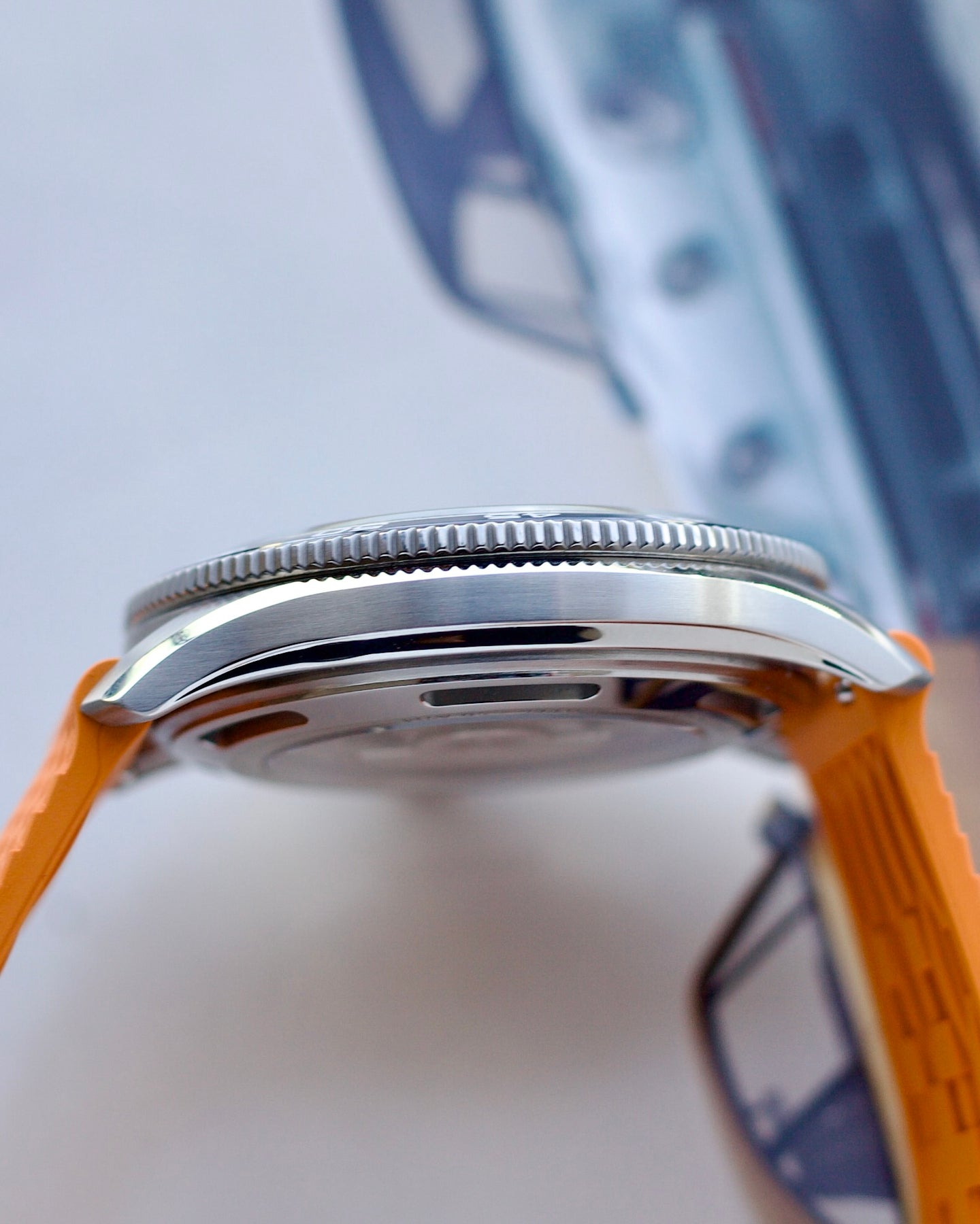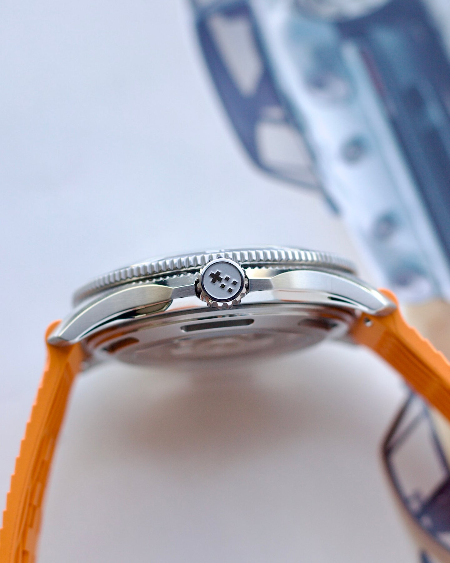 An ultra-wearable Trident – that’s slimmer and lighter on the wrist. Two-part unidirectional, ceramic bezel with a perfectly engineered ‘click’. Larger indexes with increased lume, and a dial that plays host to our applied logo. Available in three case sizes and four colours – with the option of a redesigned bracelet or quick-release strap. Plus, an exhibition caseback so you can see Sellita’s SW200-1 movement