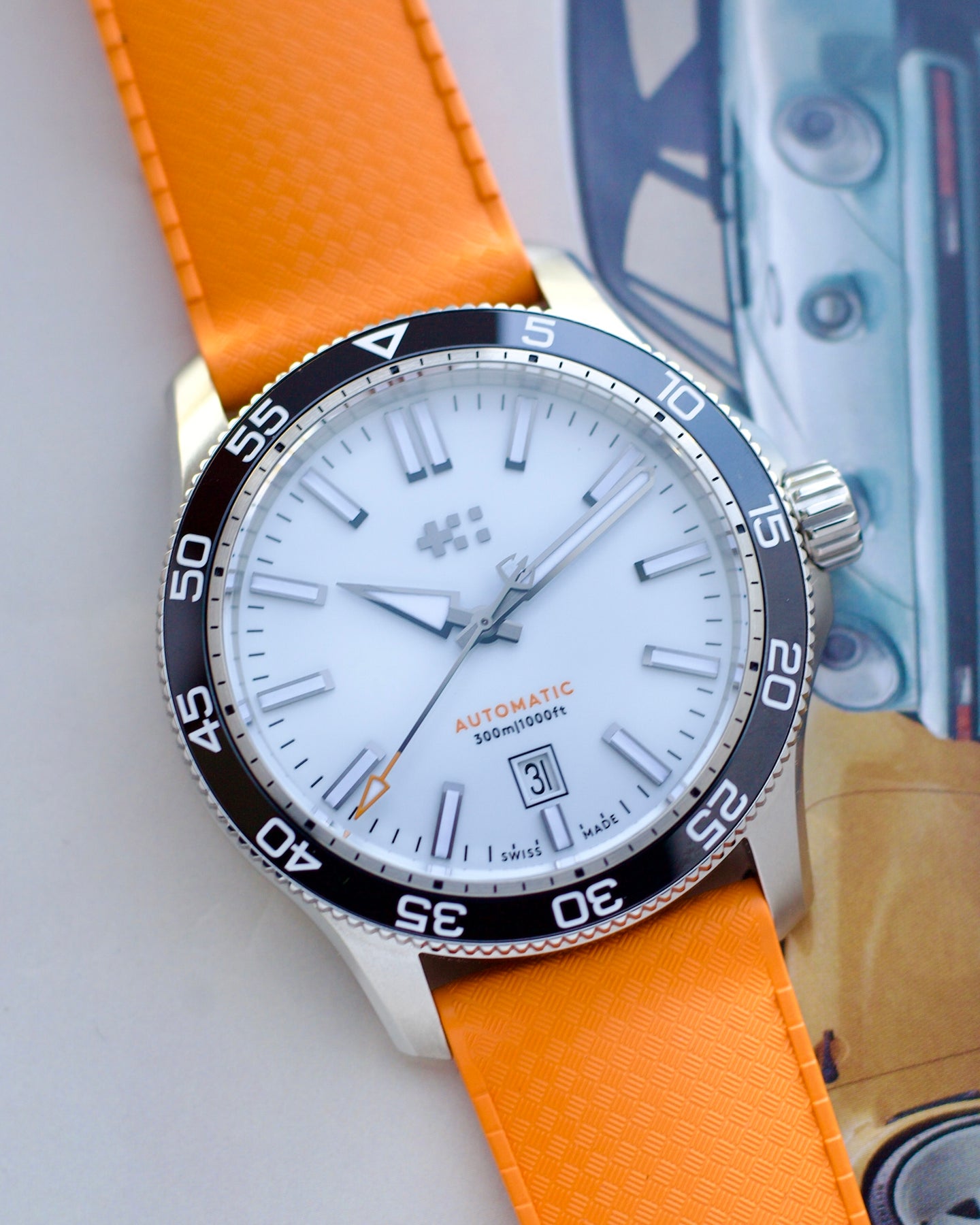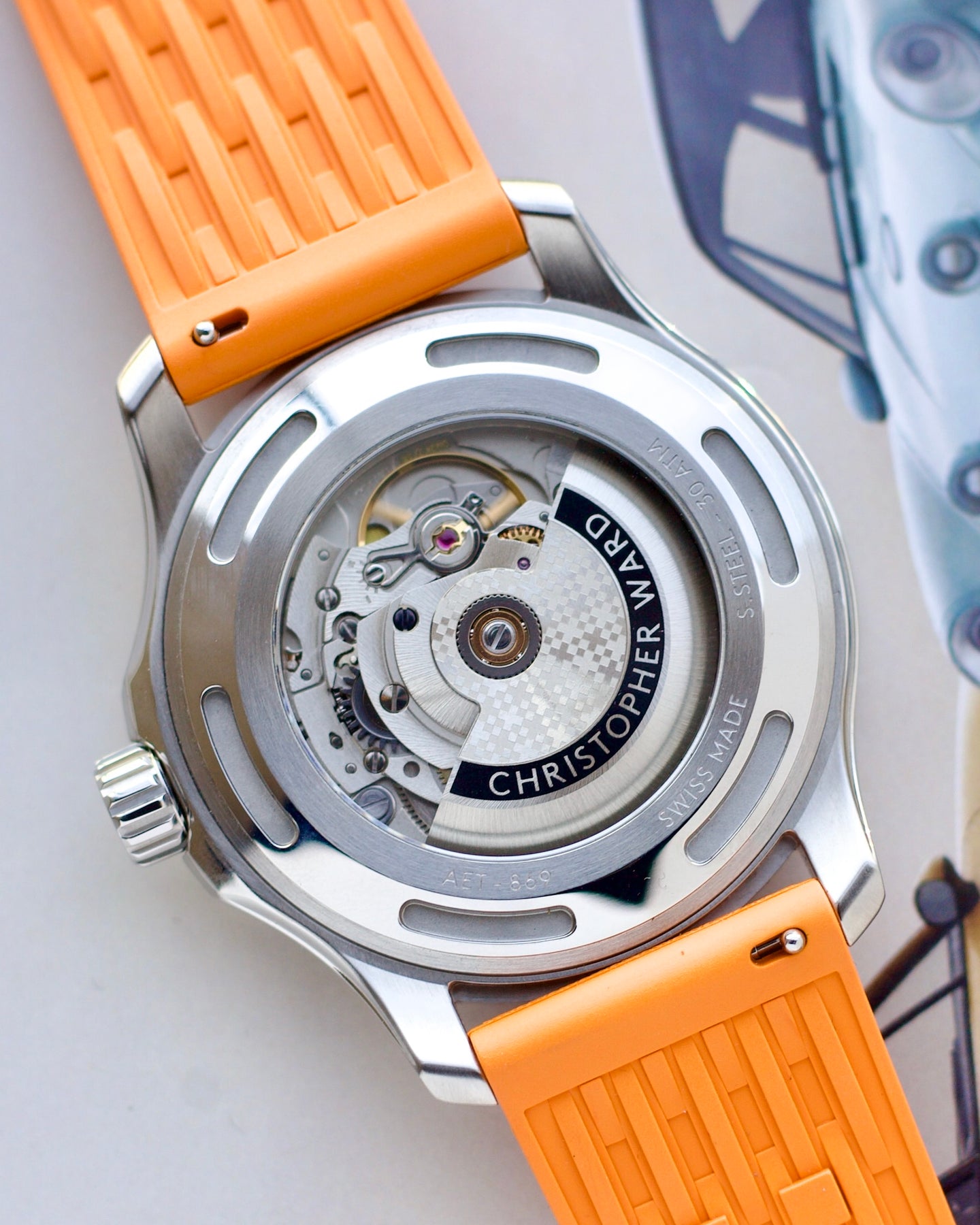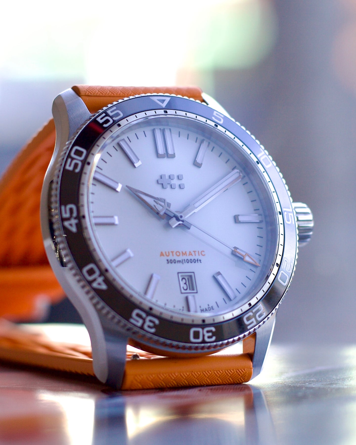 An ultra-wearable Trident – that’s slimmer and lighter on the wrist. Two-part unidirectional, ceramic bezel with a perfectly engineered ‘click’. Larger indexes with increased lume, and a dial that plays host to our applied logo. Available in three case sizes and four colours – with the option of a redesigned bracelet or quick-release strap. Plus, an exhibition caseback so you can see Sellita’s SW200-1 movement