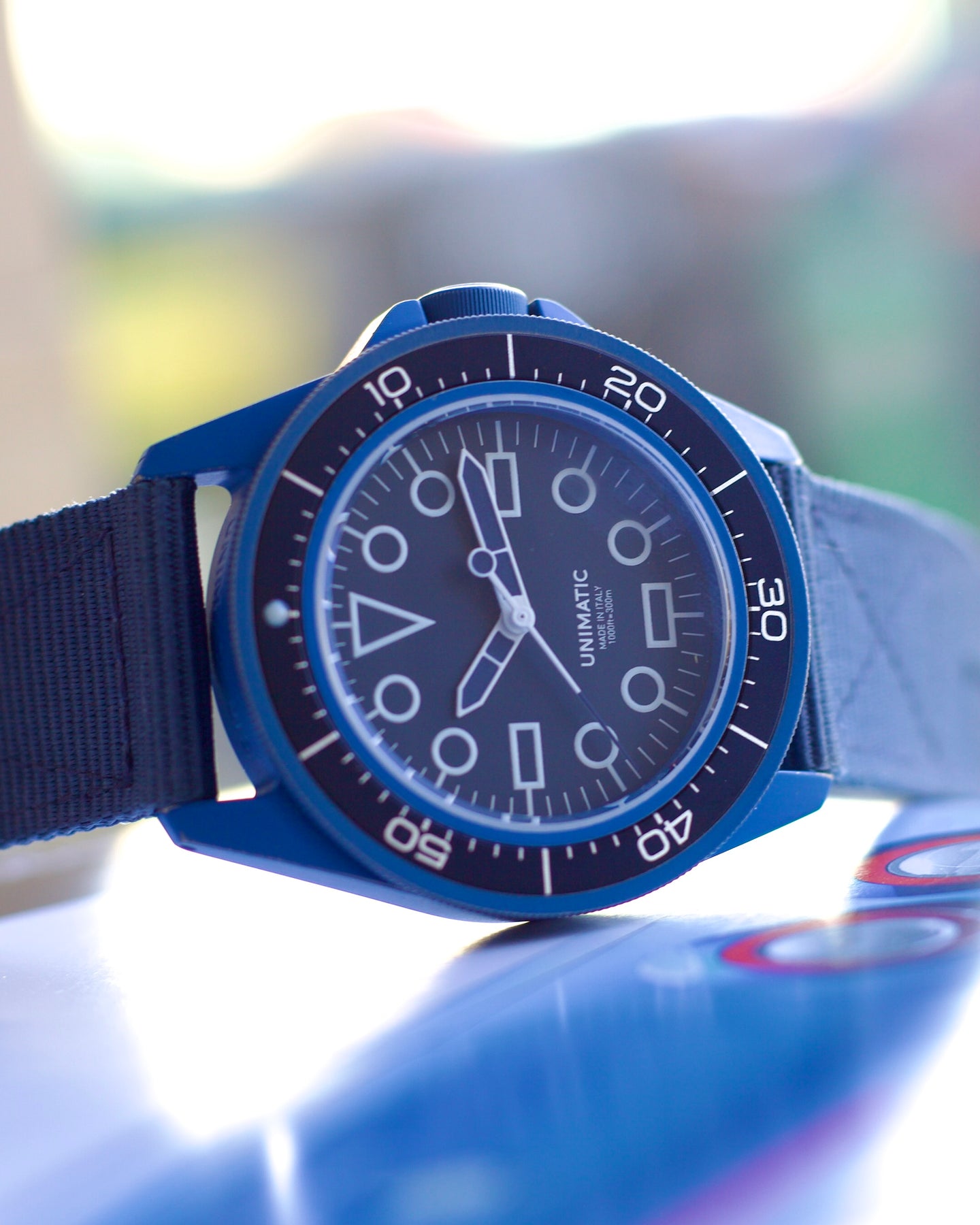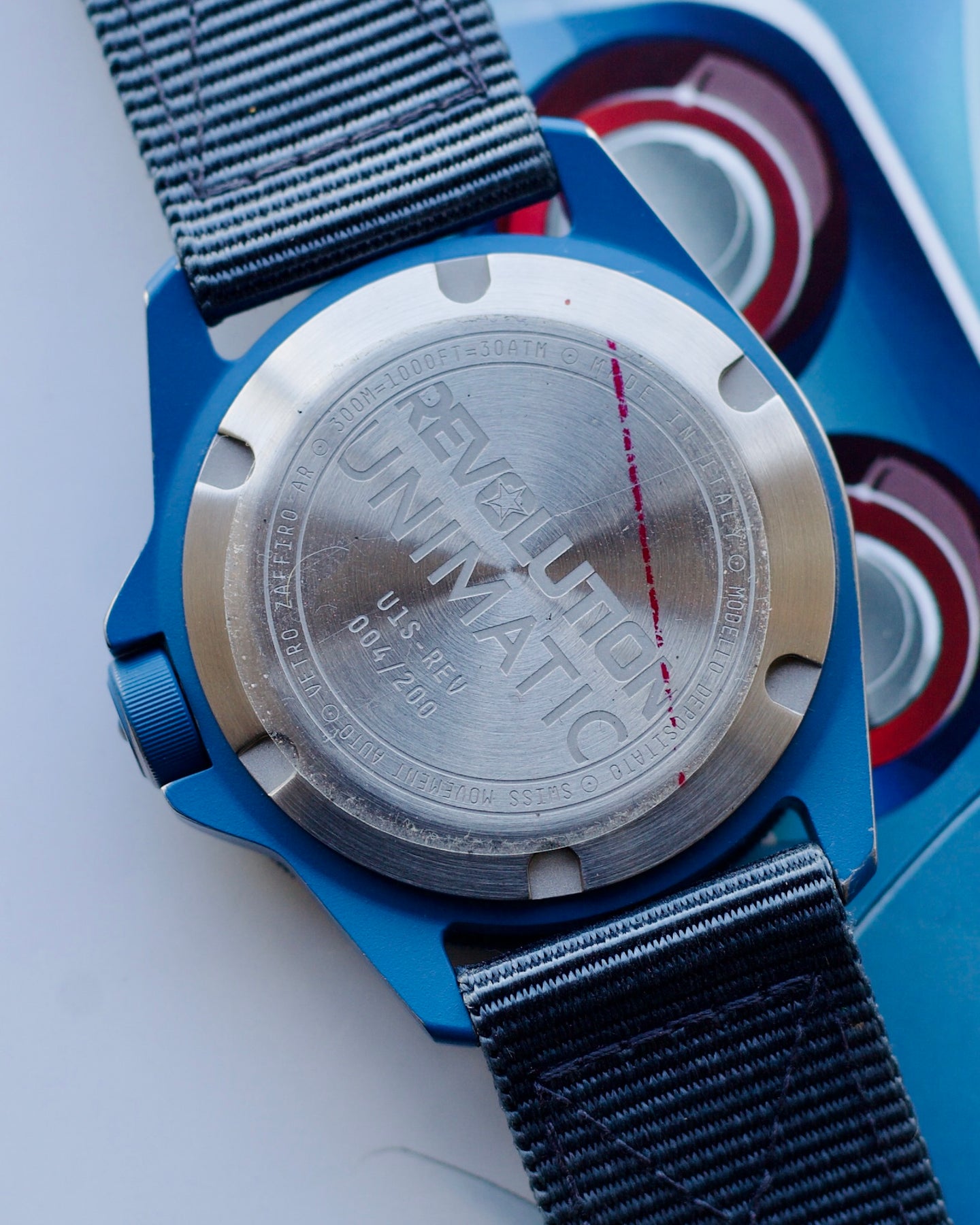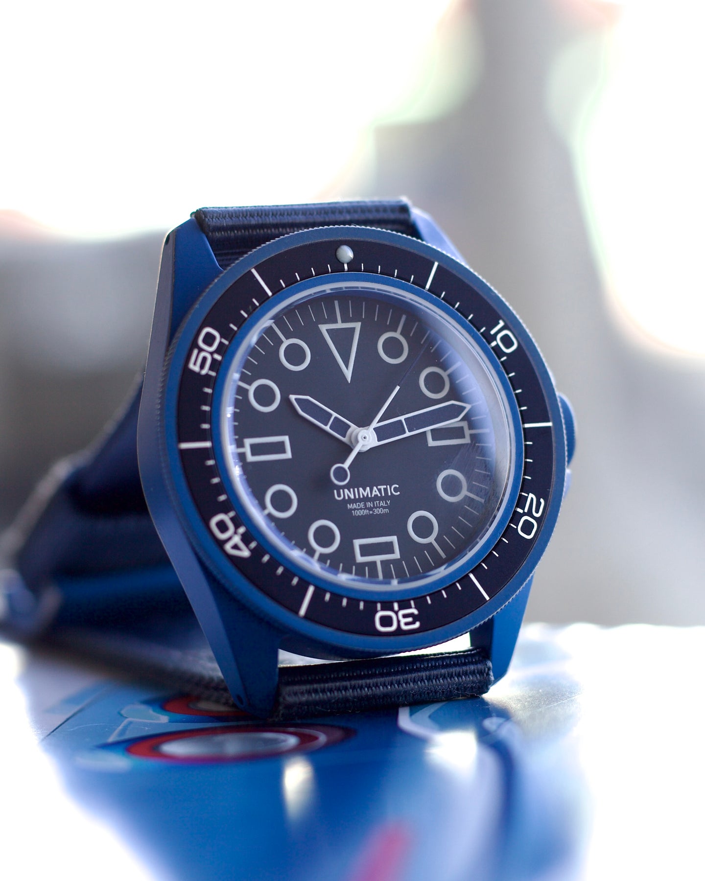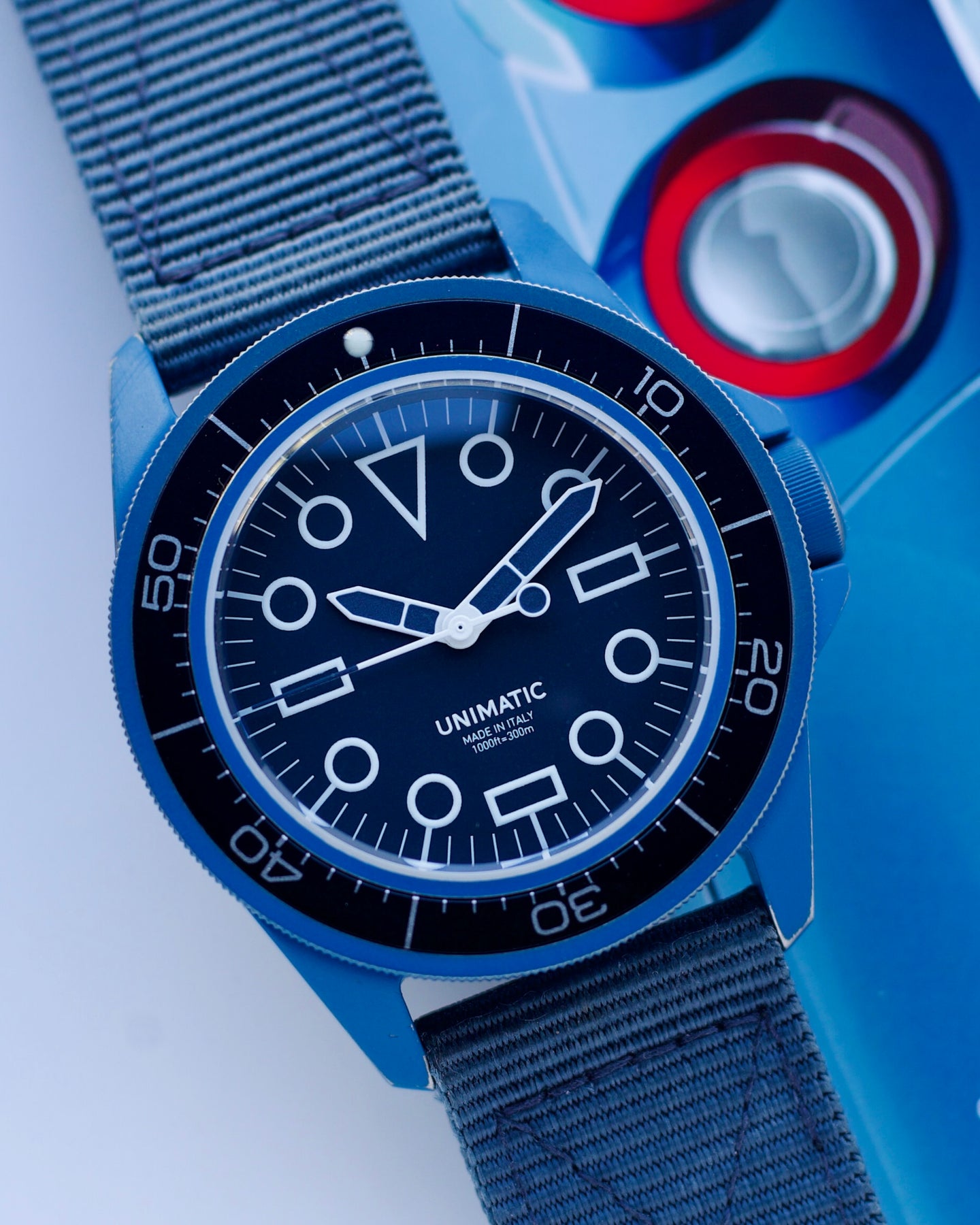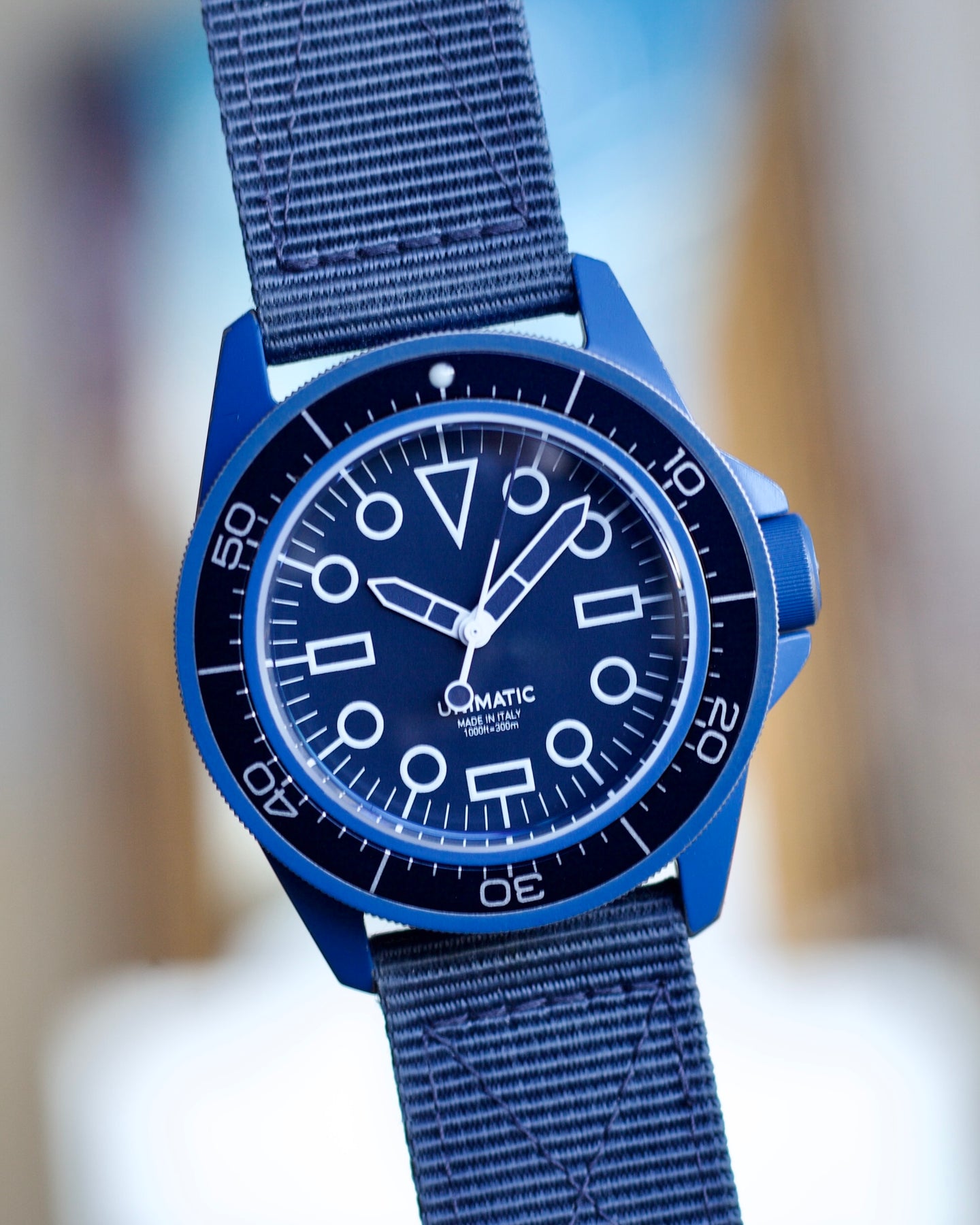 The Modello Uno U1S-REV “MILSUB BLUE” has been developed in collaboration with Revolution, a stunning monochromatic take on the iconic military diver with a unique distressed ceramic coating. This vivid execution of the 41.5mm steel watch plays with expectations as to what a dive watch is, while still offering a tough, capable timepiece rated to 300 meters. Sapphire Crystal and Water Resistant 20om