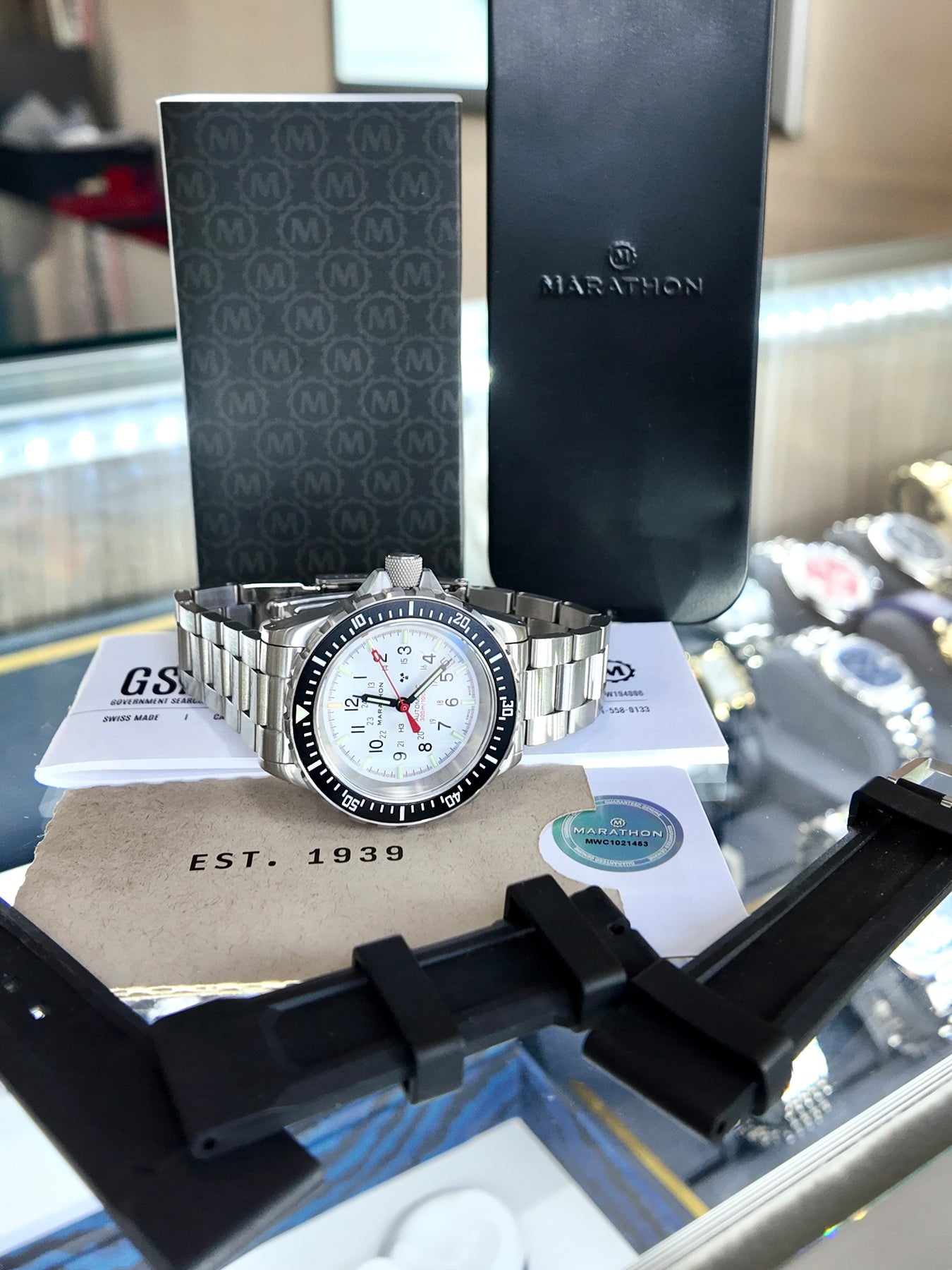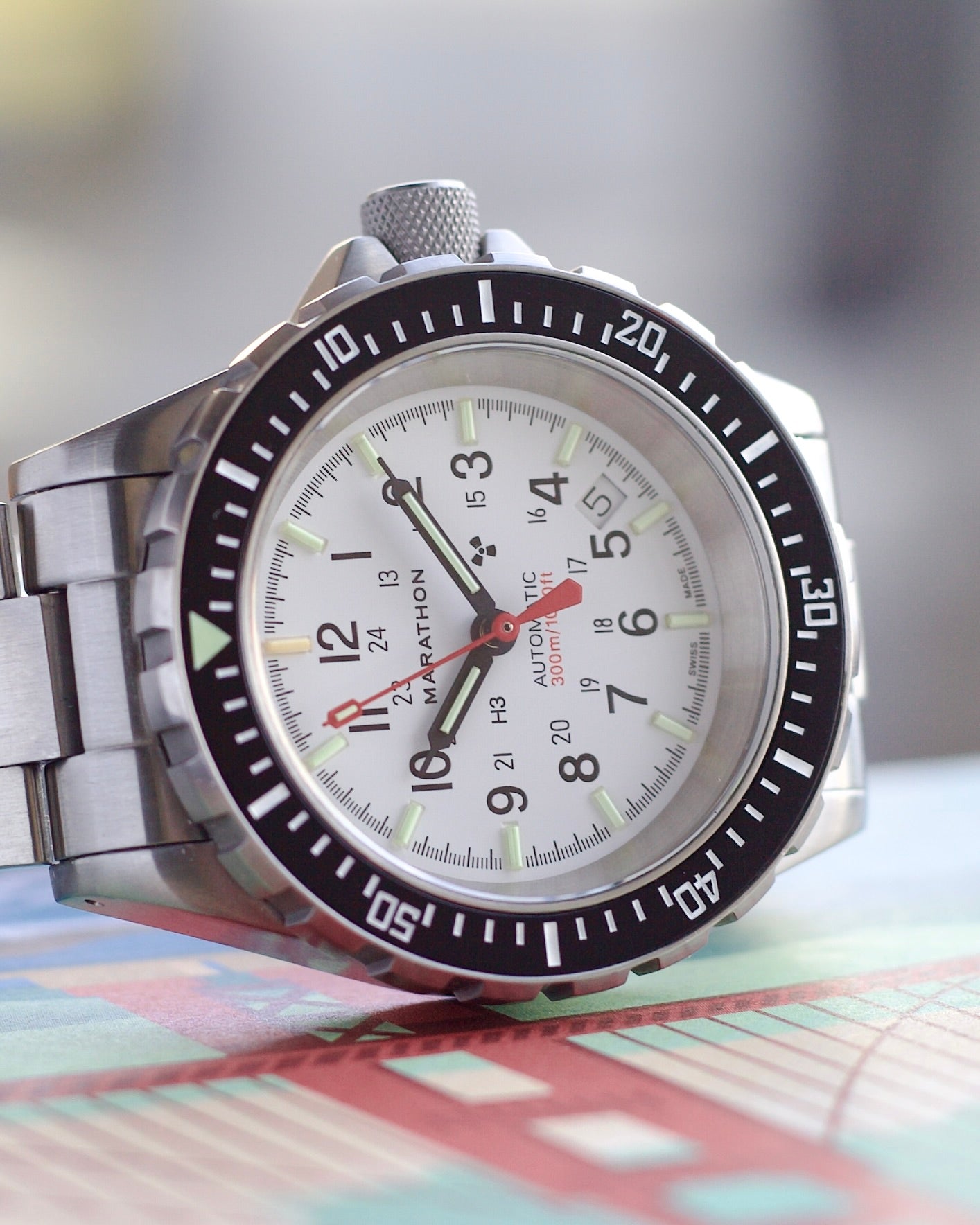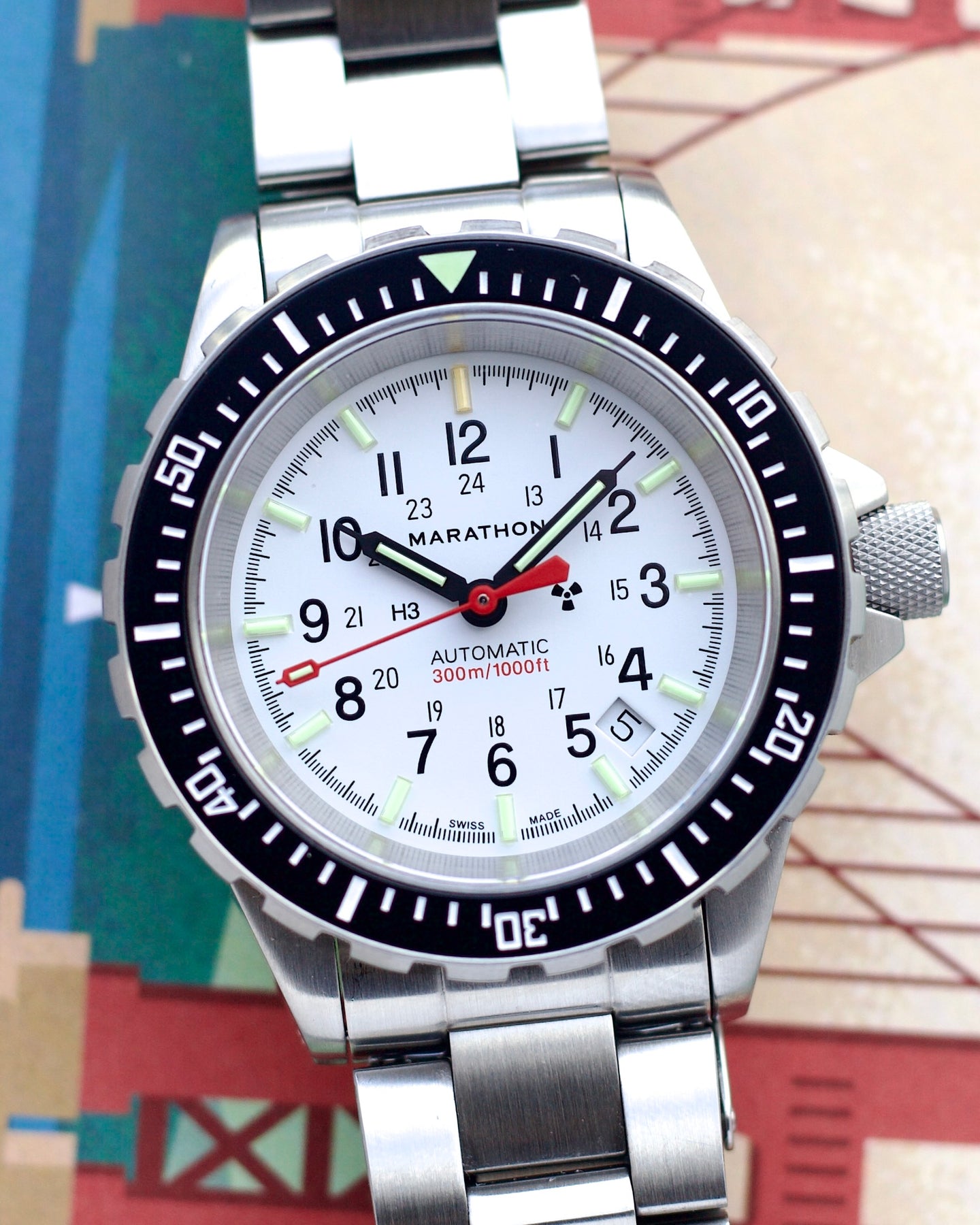 Marathon's 41mm Arctic Edition Large Diver's Automatic is a renowned Government Search and Rescue (GSAR) timepiece.