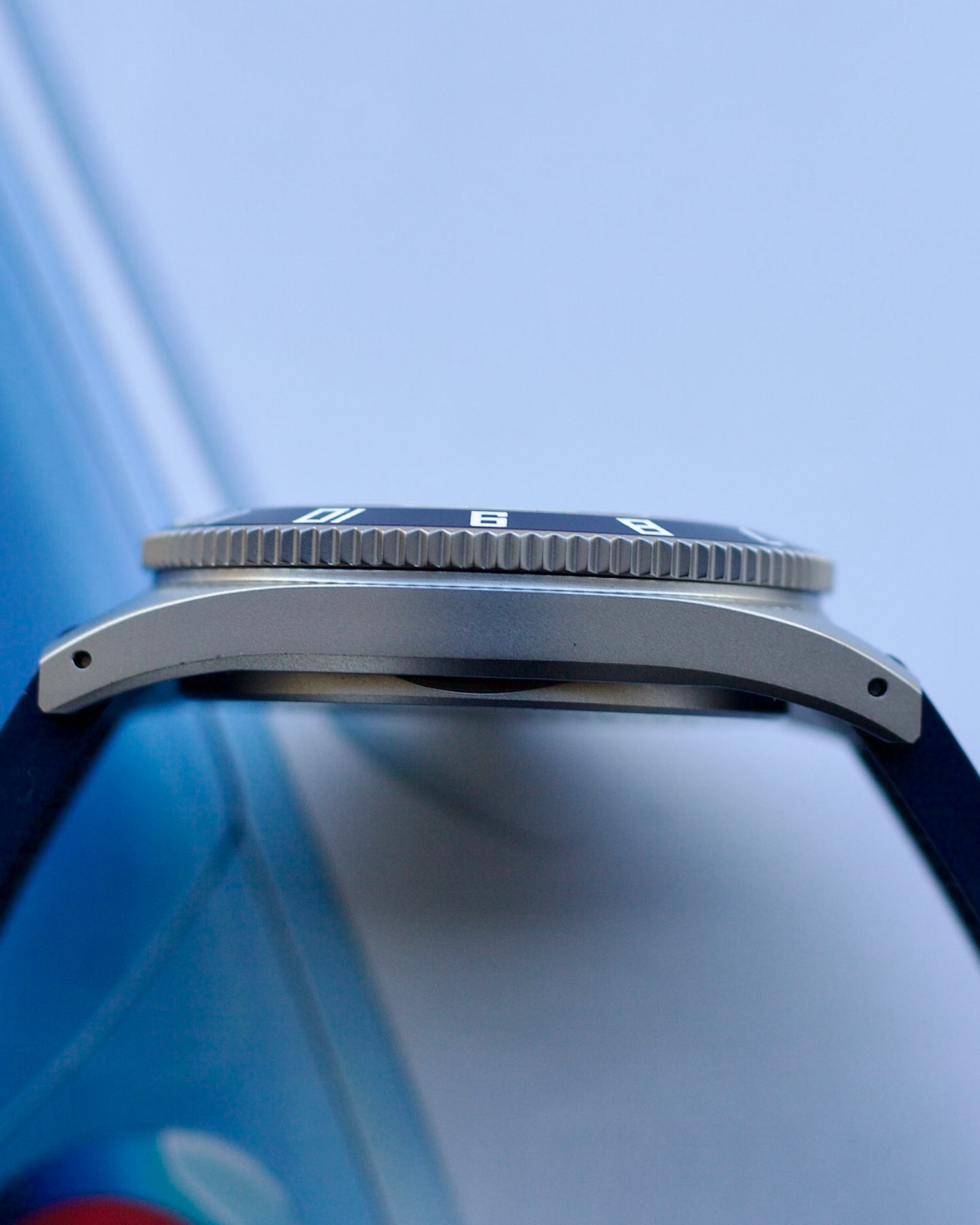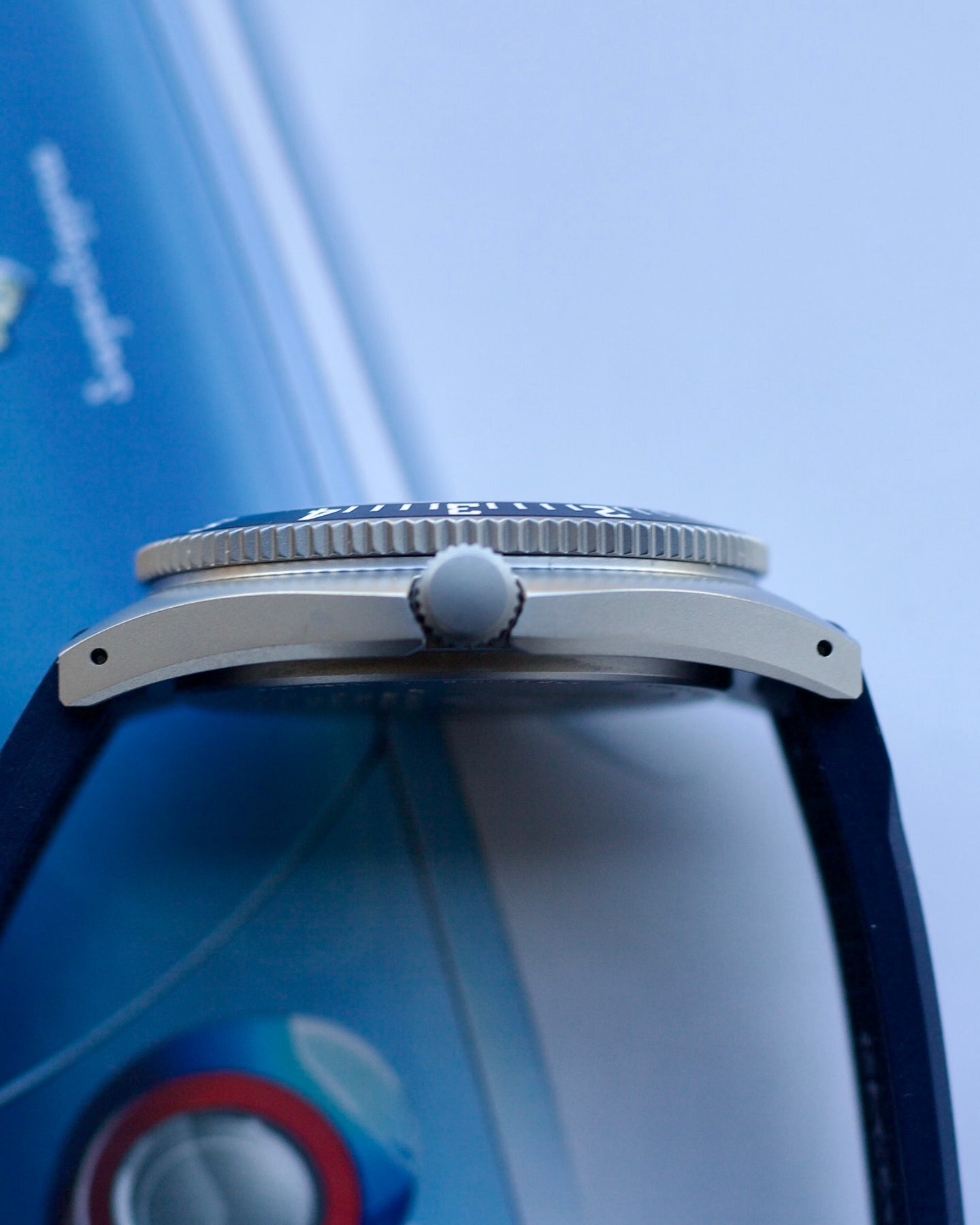 Blue Yonder is colour-matched with our new blue FKM 3-piece rubber strap kit and comes with a complimentary blue travel pouch.