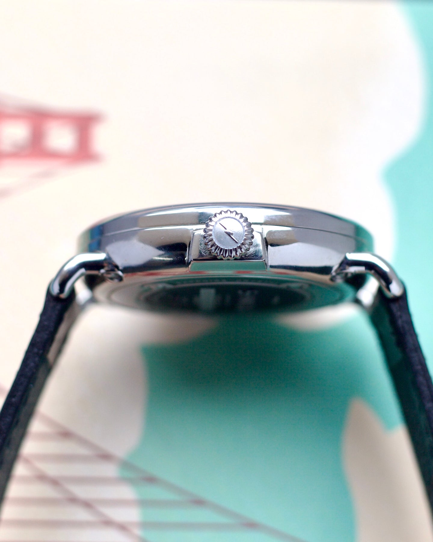This 41mm Runwell features a rich green dial set in a solid stainless steel case finished with a classic pumpkin crown. The double-domed sapphire crystal protects the watch from scratches through years of wear.