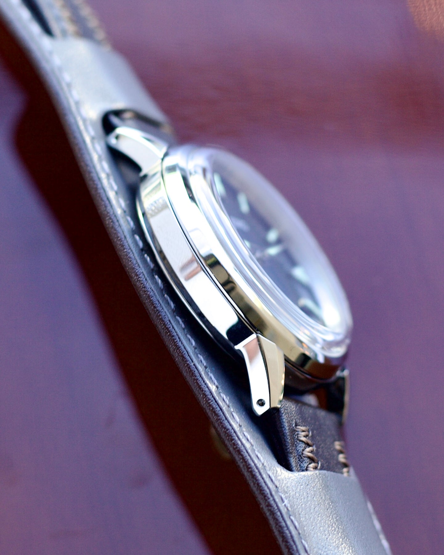 the indexes and the hour and minute hands are coated with Lumibrite for legibility in the dark.
